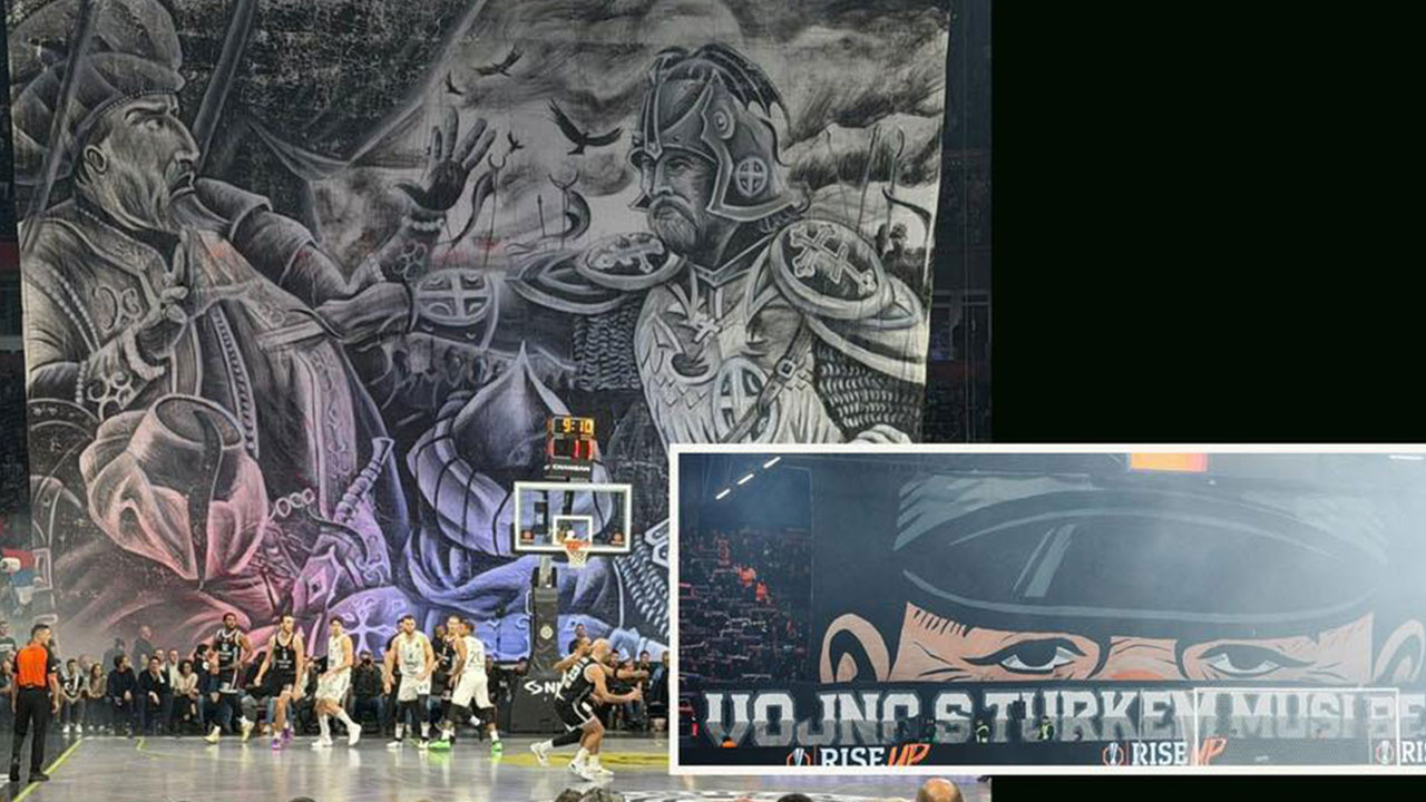 Euroleague’de Fenerbahçe Beko’nun Partizan’ı deplasmanda mağlup ettiği maçın başında açılan dev pankart dikkat çekti. Osmanlı Devleti Sultanı 1. Murad’ın 1. Kosova Savaşı’nda Milos Obilic tarafından şehit edilişinin abartılı bir temsili olan pankartın hikayesini, tarihçi Erhan Afyoncu anlattı.